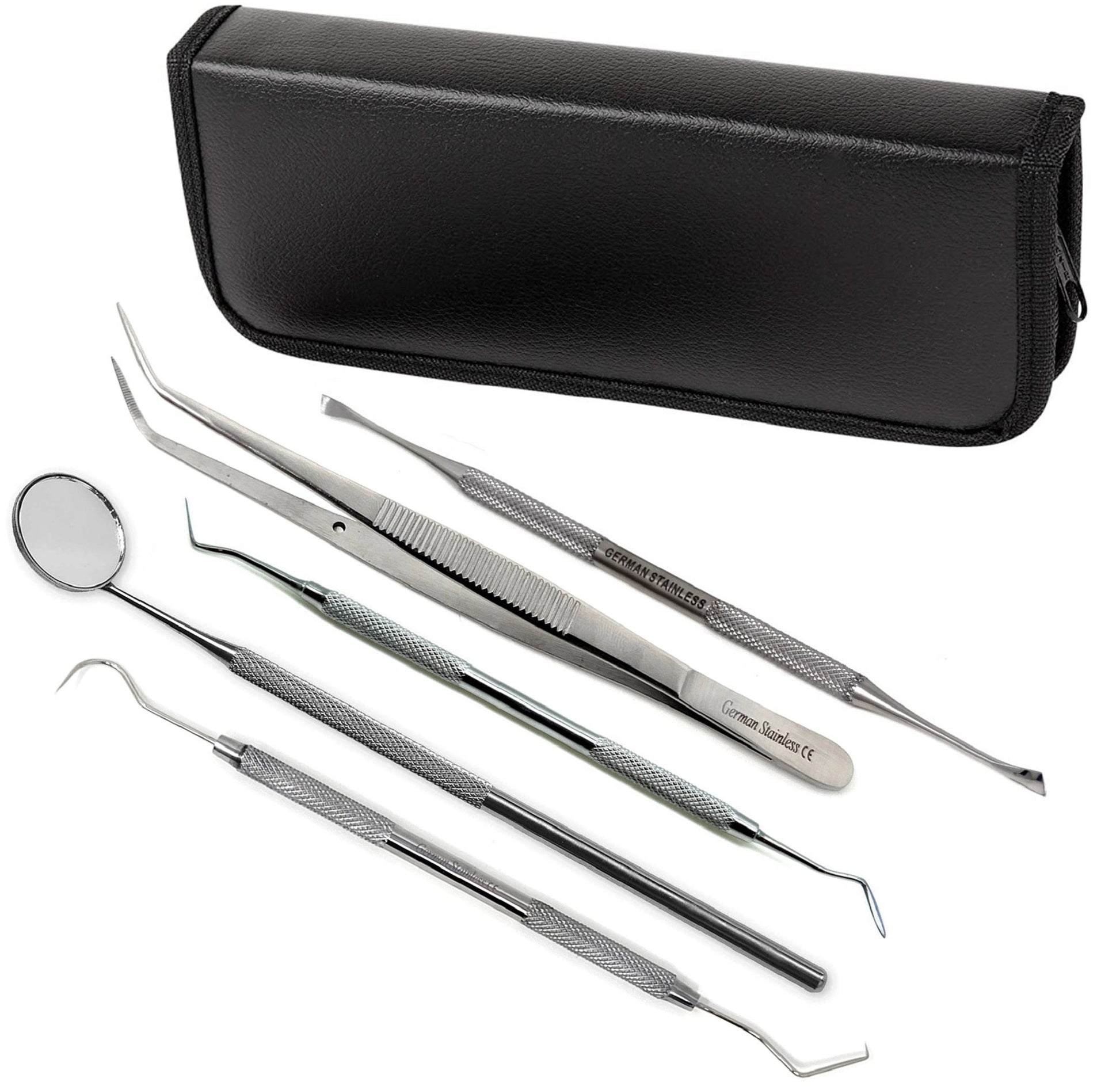 PROFESSIONAL 5-IN-1 DENTAL HYGIENE KIT –– The dental kit is designed for both professional dentists and personal use. These hygiene tools help to remove stains, tartar, and debris from teeth and gums without causing pain and damaging tooth enamel.